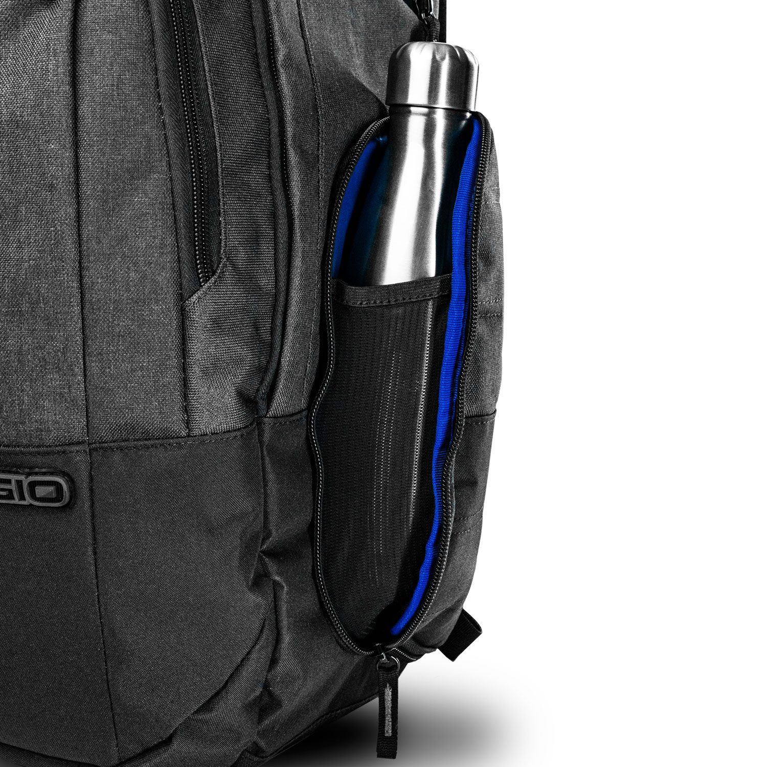 - 一个大侧袋和一个大侧面混合饮料袋。